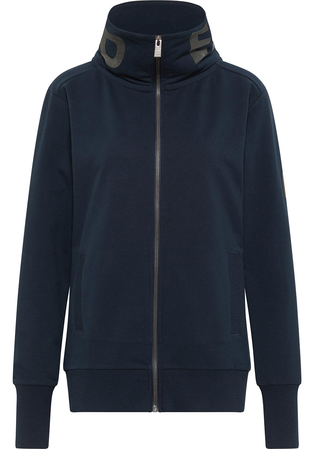 großer Flockdruck auf dem Kragen/ Logo Badge an der Seitennaht