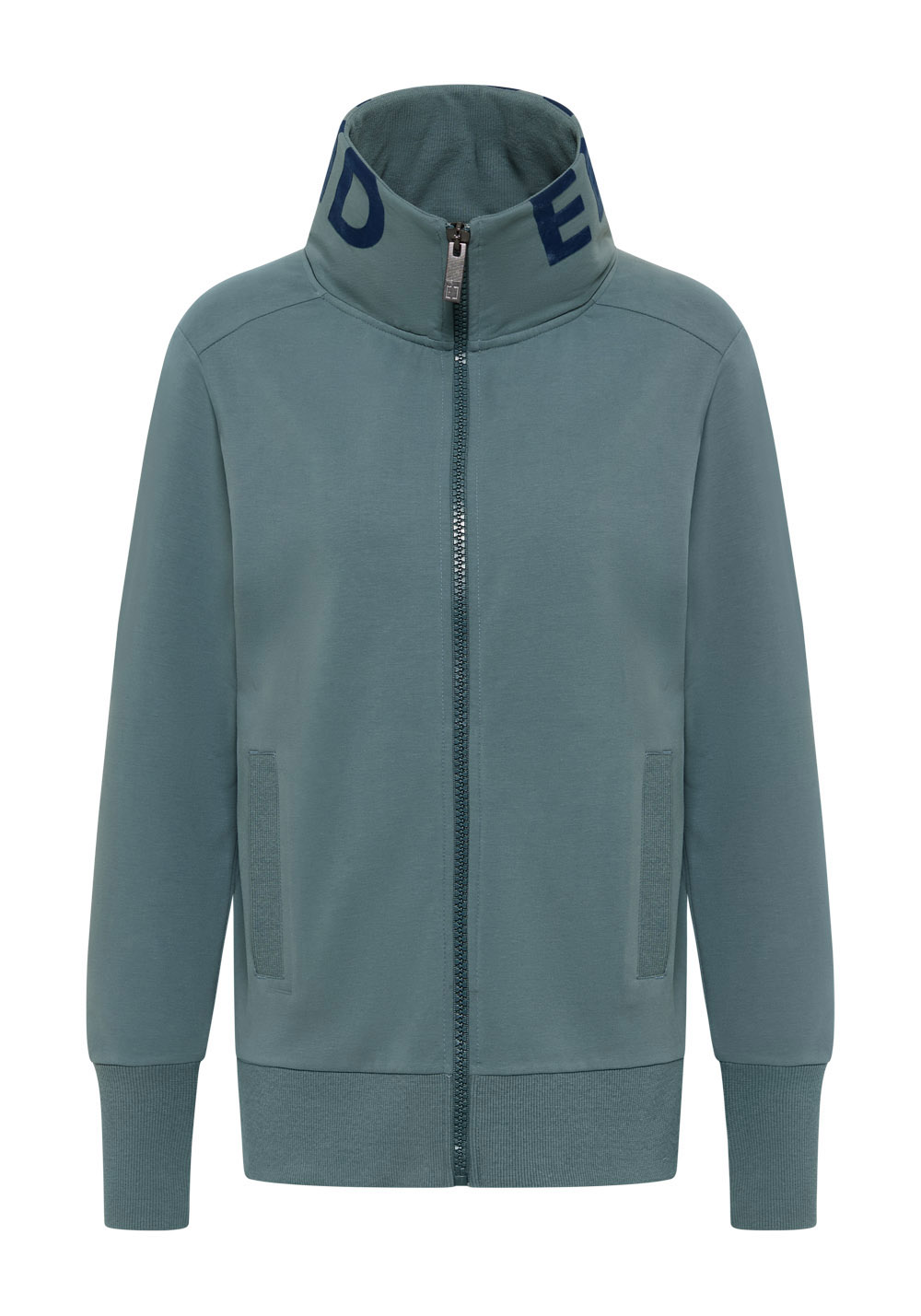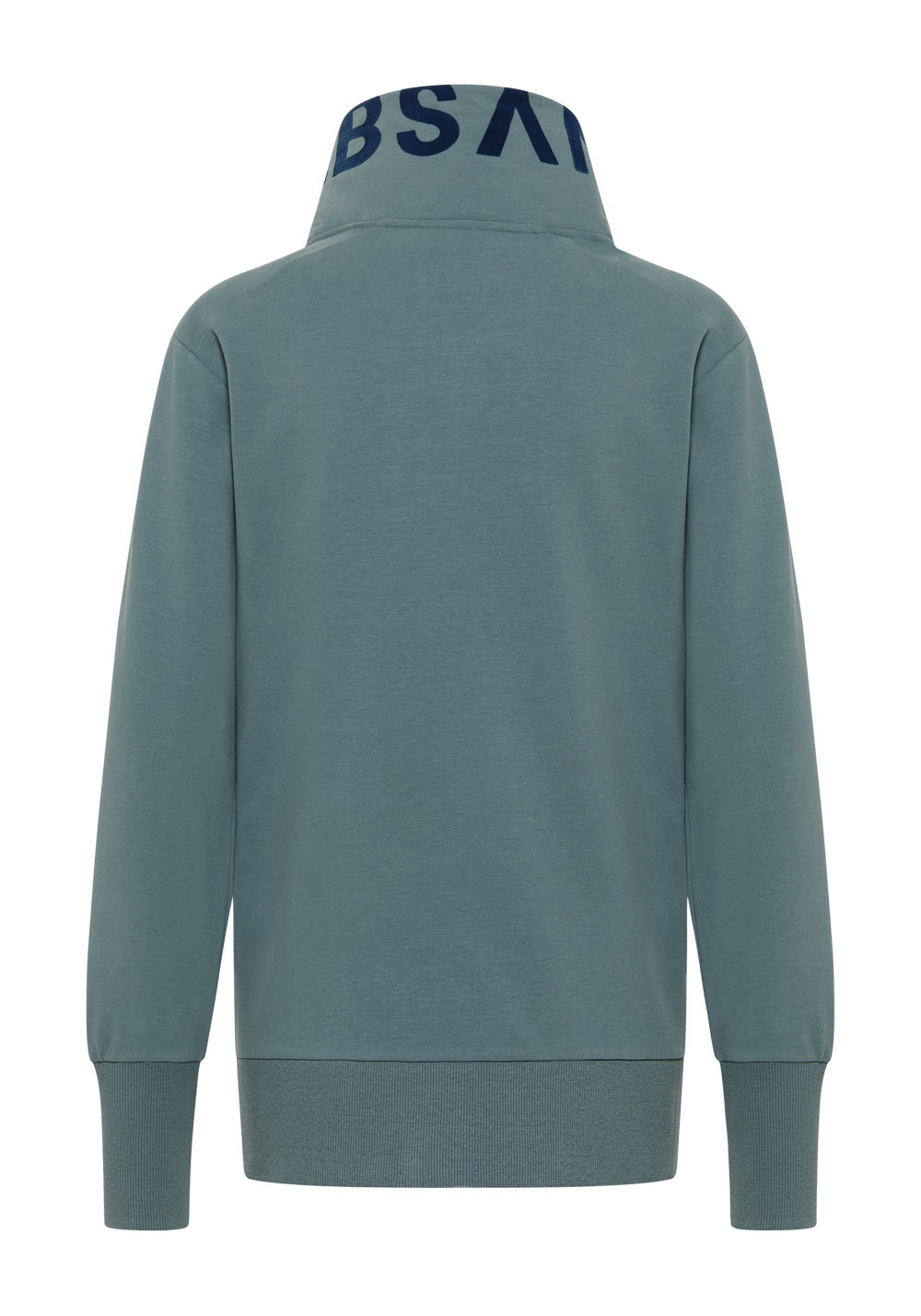 großer Flockdruck auf dem Kragen/ Logo Badge an der Seitennaht