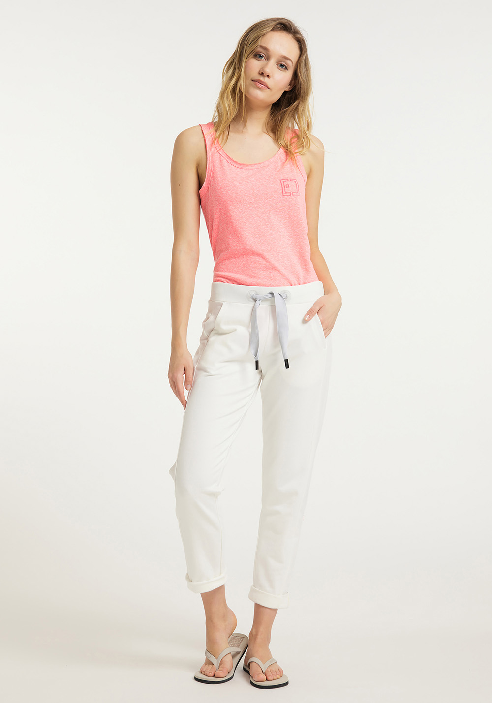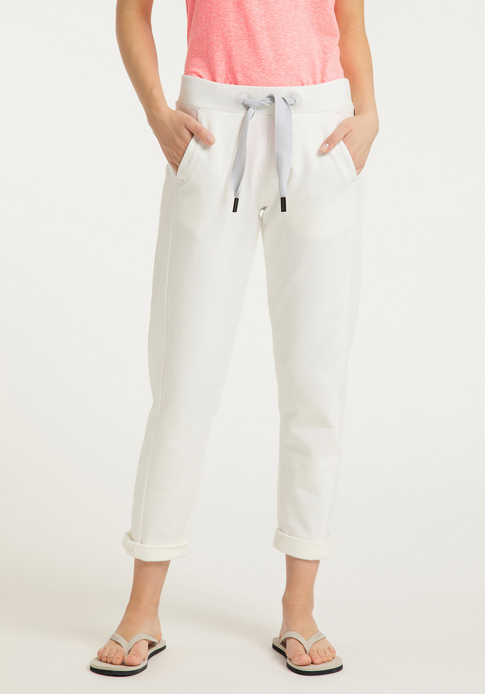 aufwendig gestickte Ösen, breite Kordel mit gebrandeten Metallende, kleiner Logo Badge an der Seitennaht, weicher Flockprint auf dem Bund