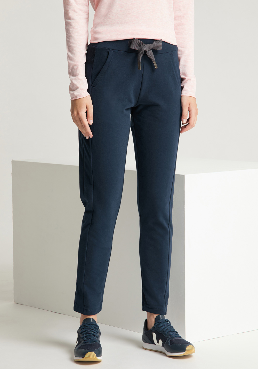 aufwendig gestickte Ösen, breite Kordel mit gebrandeten Metallende, kleiner Logo Badge an der Seitennaht, weicher Flockprint auf dem Bund
