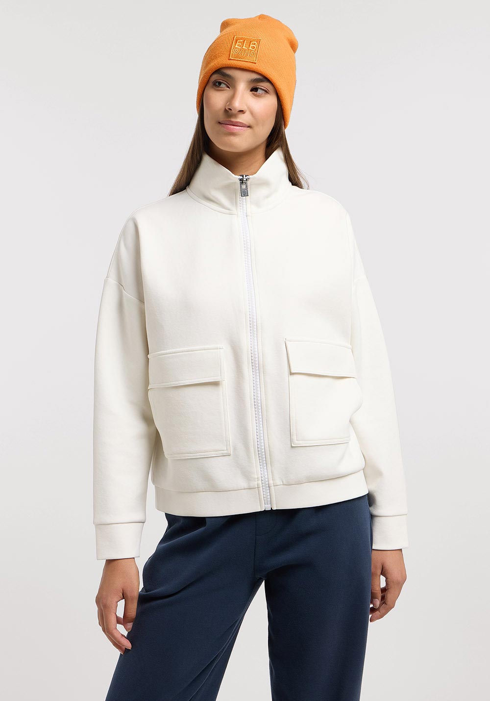 loose fit, locker geschnittene Sweatjacke im Cargo-style, Rückenlänge 59cm