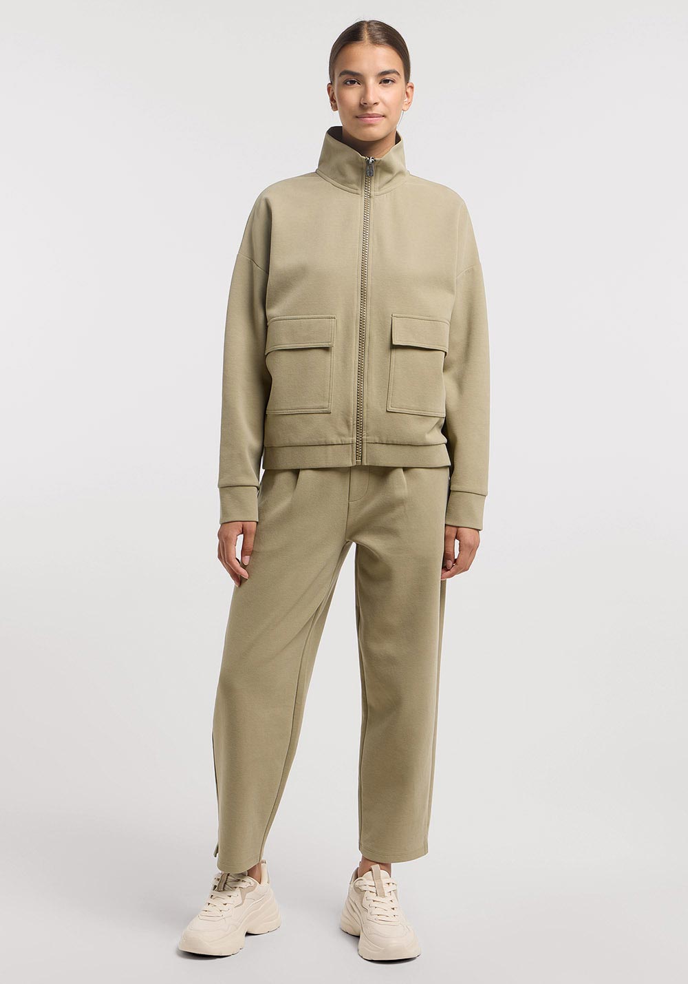 loose fit, locker geschnittene Sweatjacke im Cargo-style, Rückenlänge 59cm