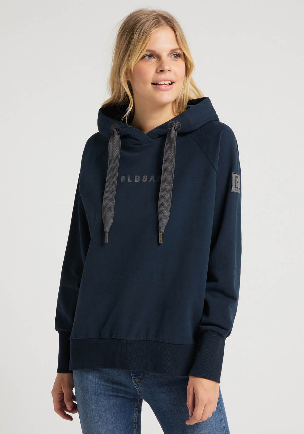 Dezenter Logo Flockdruck auf der Brust und auf dem Rückenteil (über dem Saumbündchen)/ aufwendig gestickt Ösen / breite Kordel mit gebrandeten Metallende